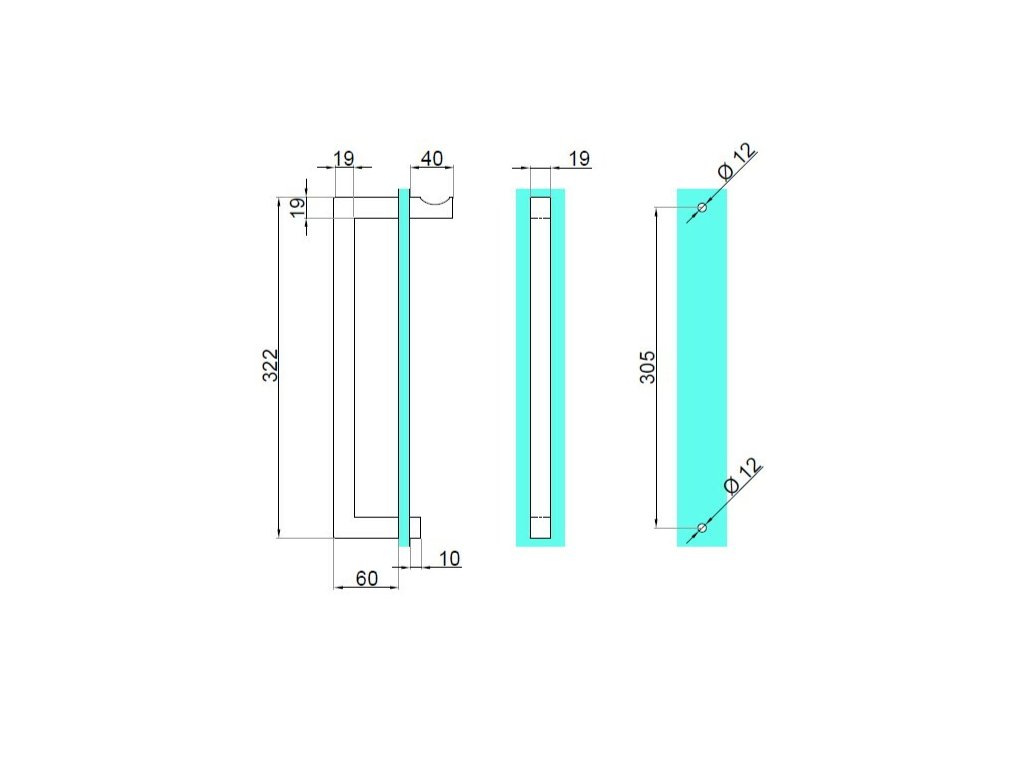 Dveřní madlo typu "C" hranaté s úchytem