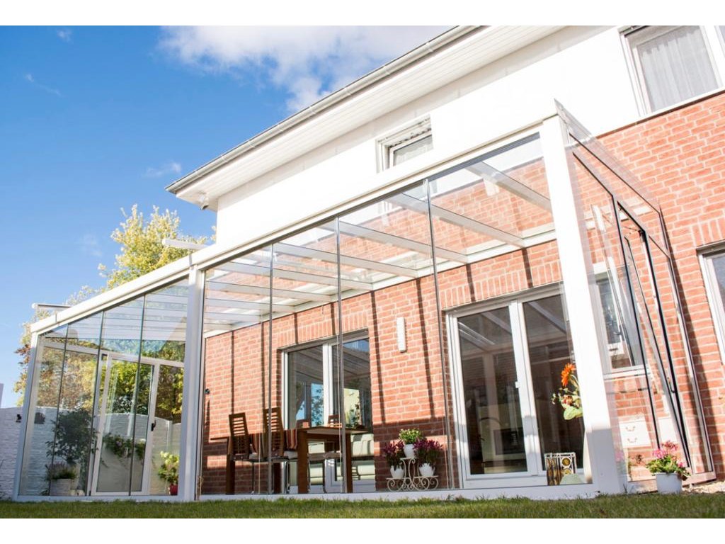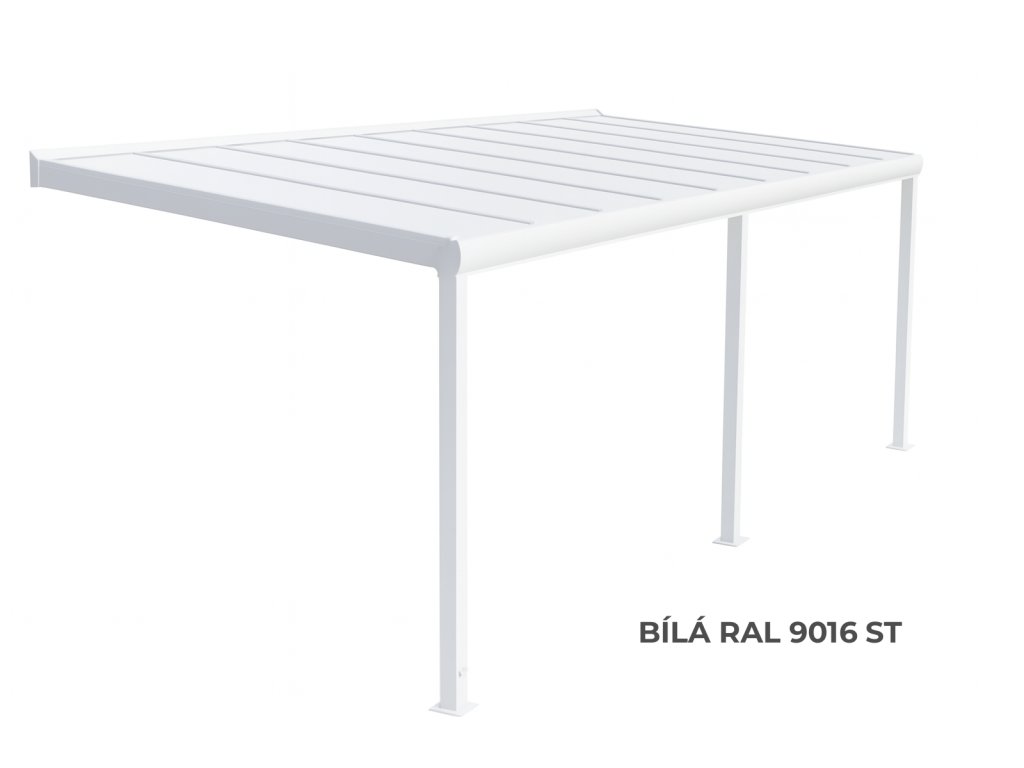 HLINÍKOVÁ PERGOLA SE SPÁDEM, BEZ PŘÍPRAVY PRO BOČNÍ STĚNY, BÍLÁ RAL 9016