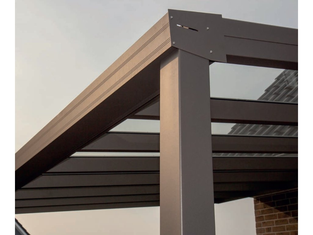 HLINÍKOVÁ PERGOLA SE SPÁDEM, BEZ PŘÍPRAVY PRO BOČNÍ STĚNY, RAL8014