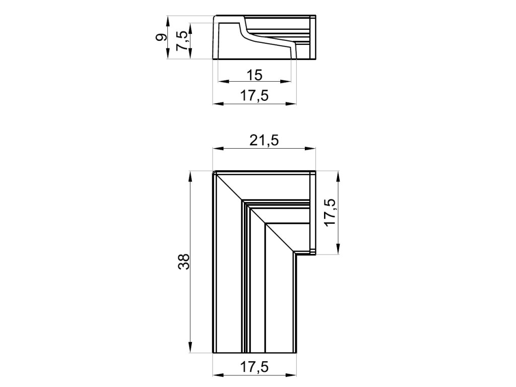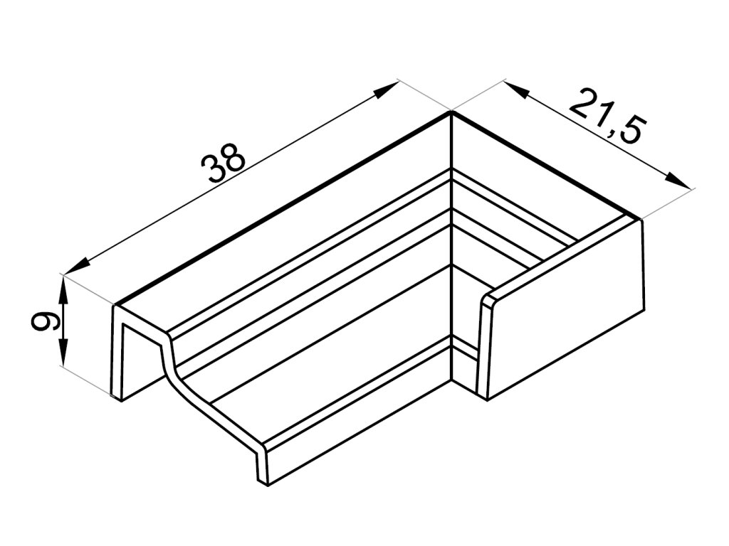 Koncovka prahu 180°, (práh-sklo), levá
