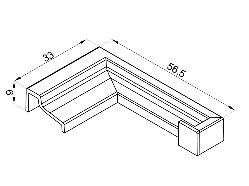 Spojka 90°, práh-sklo, levý