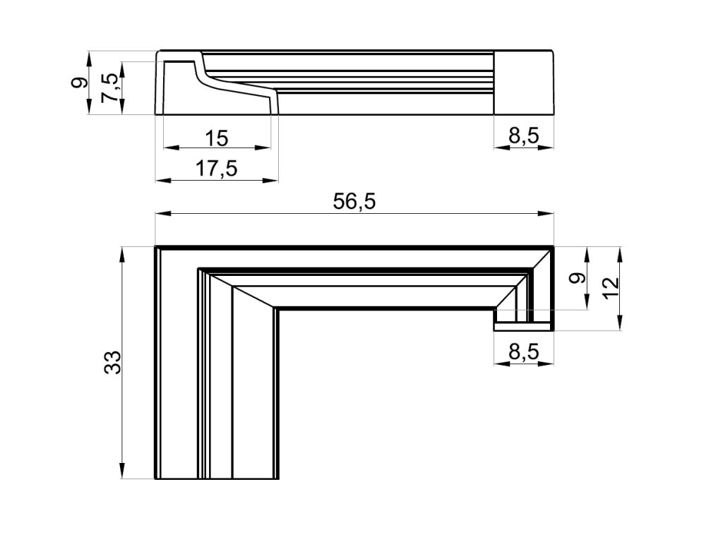 Koncovka prahu 90°, (práh-sklo), levá