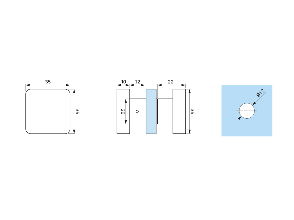 Madlo jednobodové 35x35mm,