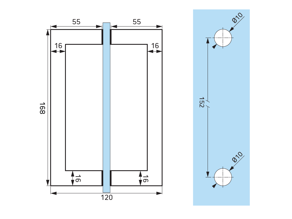 L=168 mm, vrtání Lo=152 mm, ø10 mm