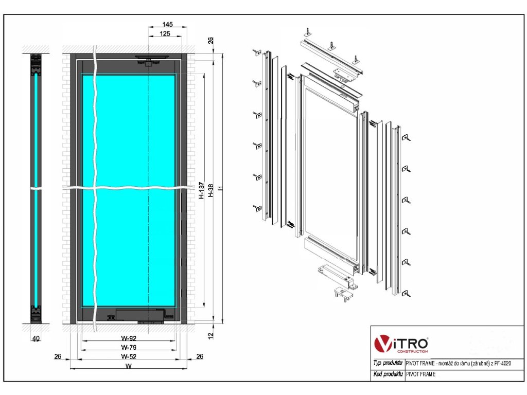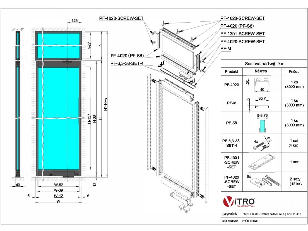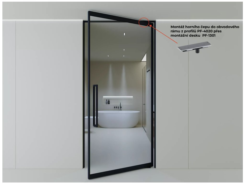 Montážní deska pro upevnění horní osy (čepu) k profilu PF-4020 (nadsvětlík/rám)