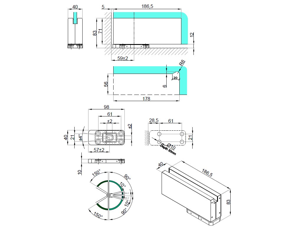- max. hmotnost 100 kg, sklo 8-12 mm