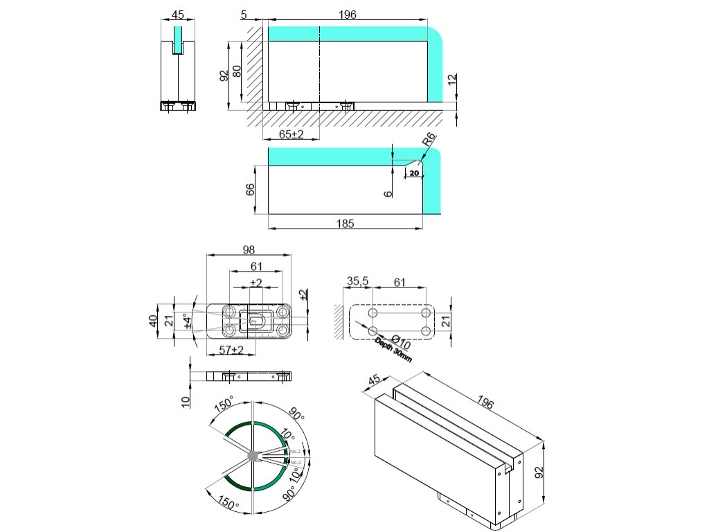 - max. hmotnost 100 kg, sklo 8-12 mm