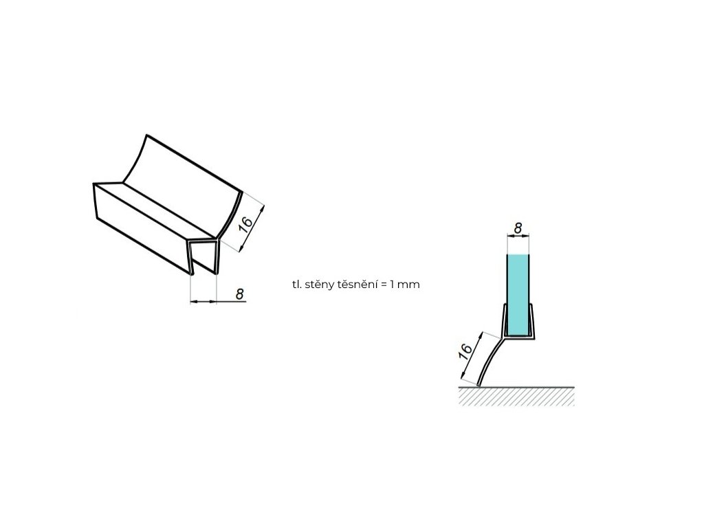 Těsnění pírko 135°, SC sklo 8 mm, L=2500