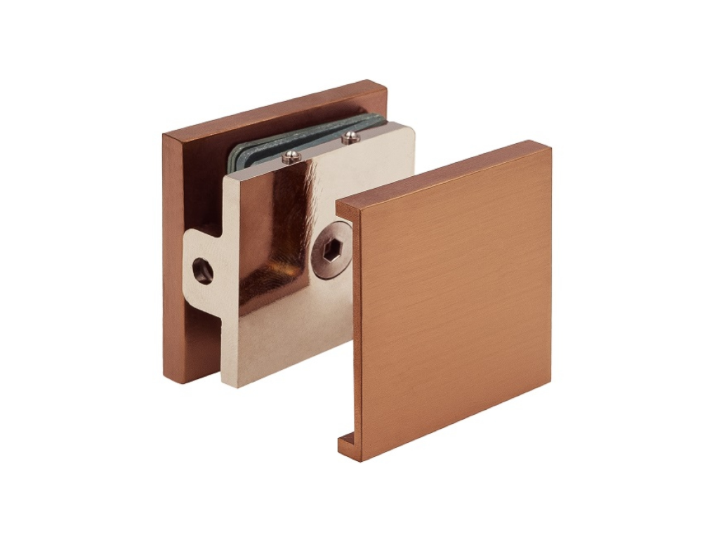 Úchyt (zed’–sklo), 45x45mm, efekt měď