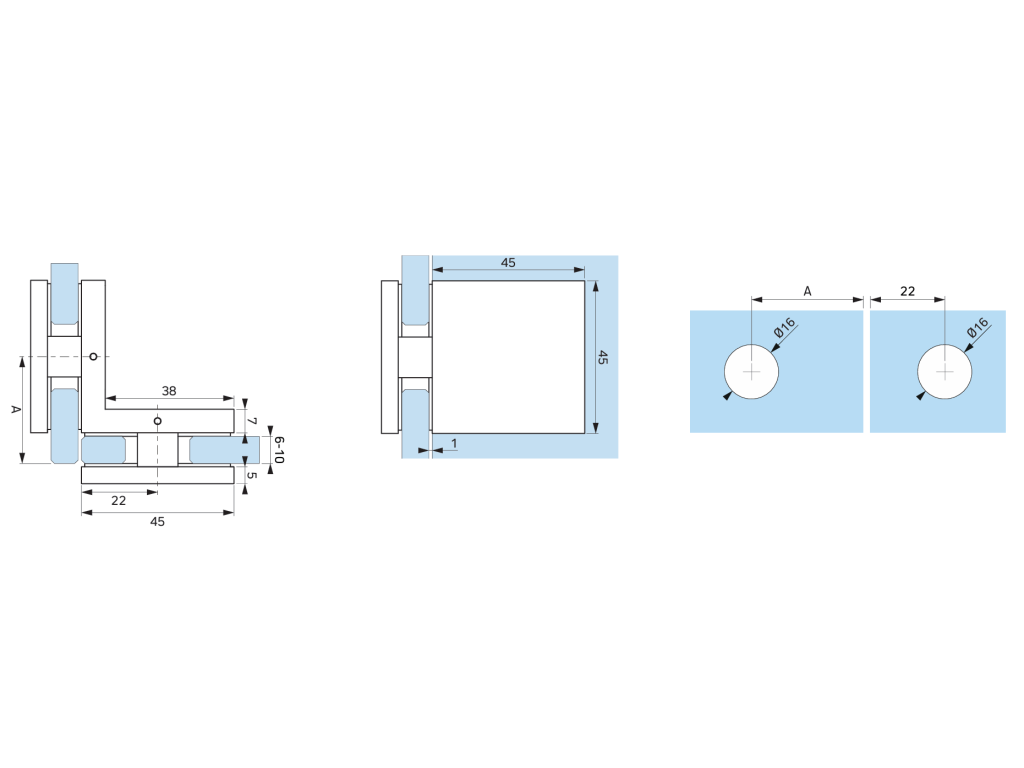 Úchyt L (sklo–sklo) na roh,