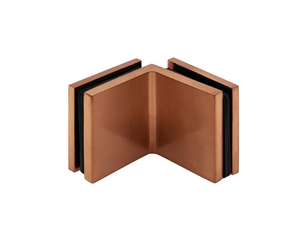 Úchyt L (sklo–sklo), 45x45mm, efekt měď