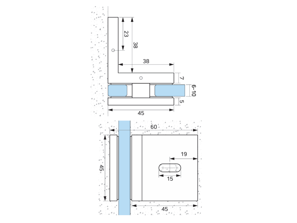 Úchyt L (zed’–sklo), 45x45mm, efekt grafit