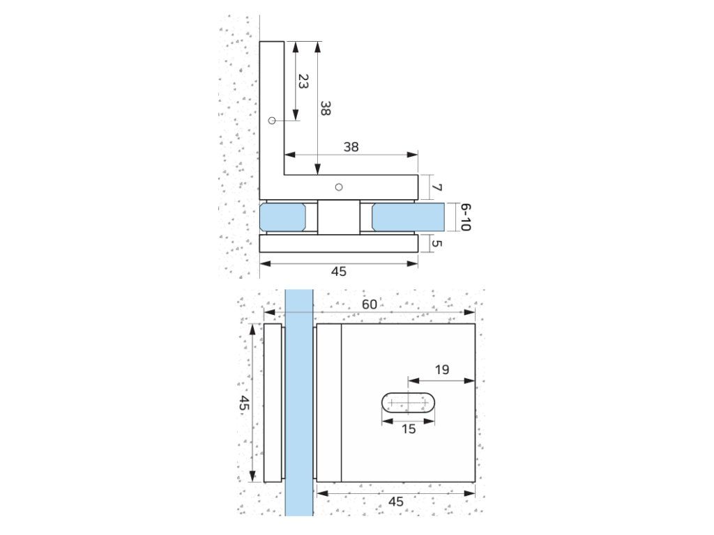 Úchyt L (zed’–sklo), 45x45mm, efekt kartáčované zlato