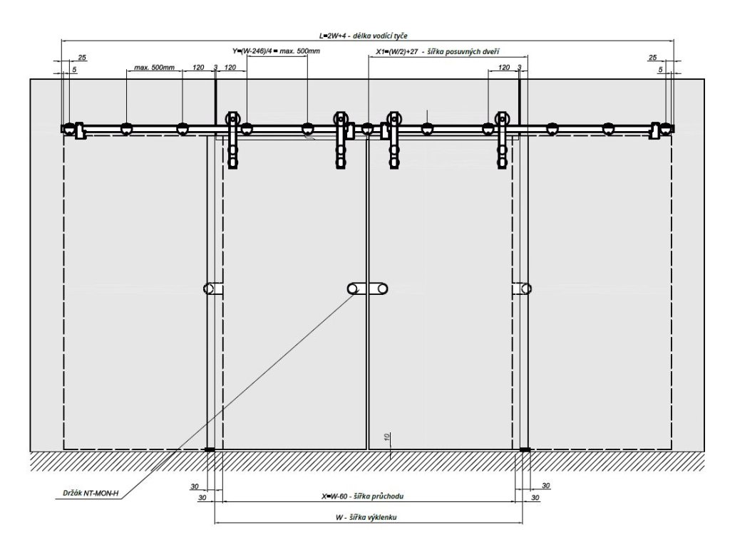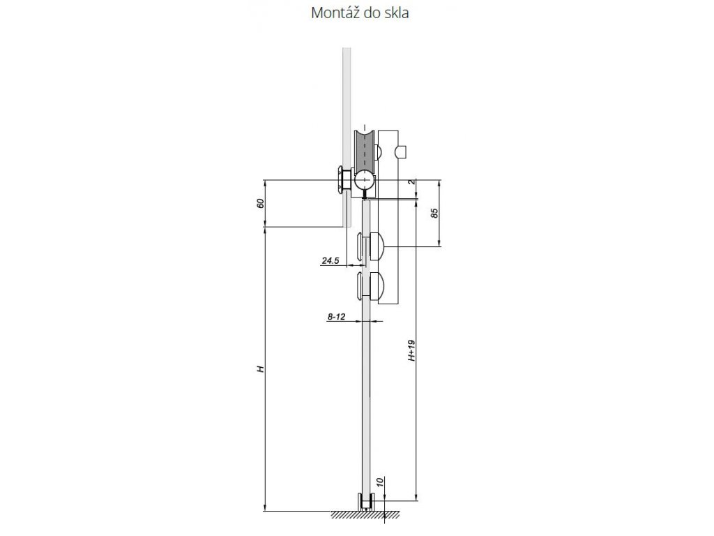 Upevnění vodícího profilu do skla, naložený terč