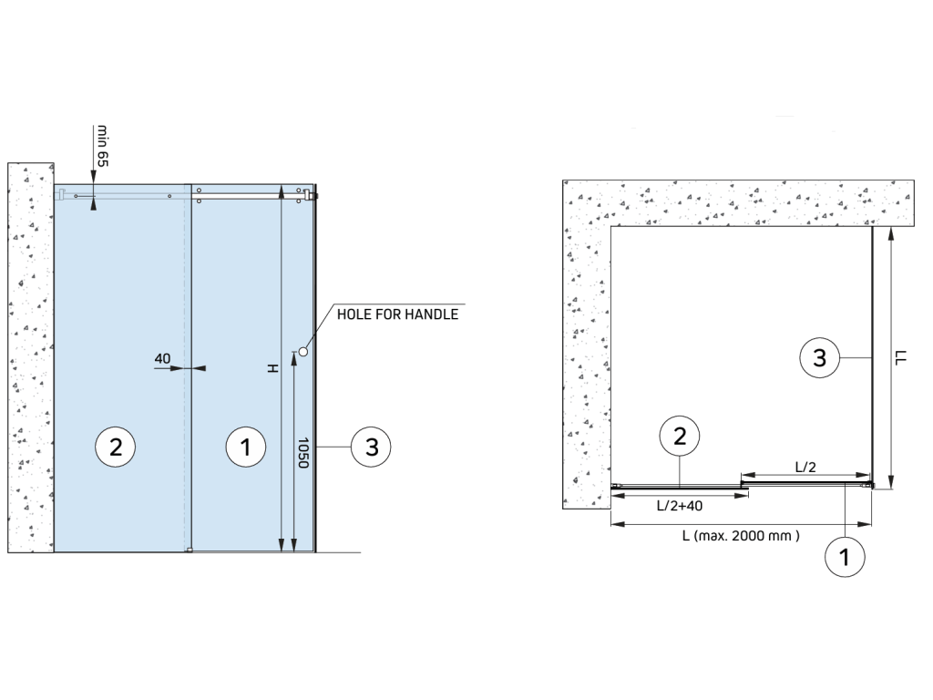 max. hmotnost 65 kg, sklo 8-12 mm