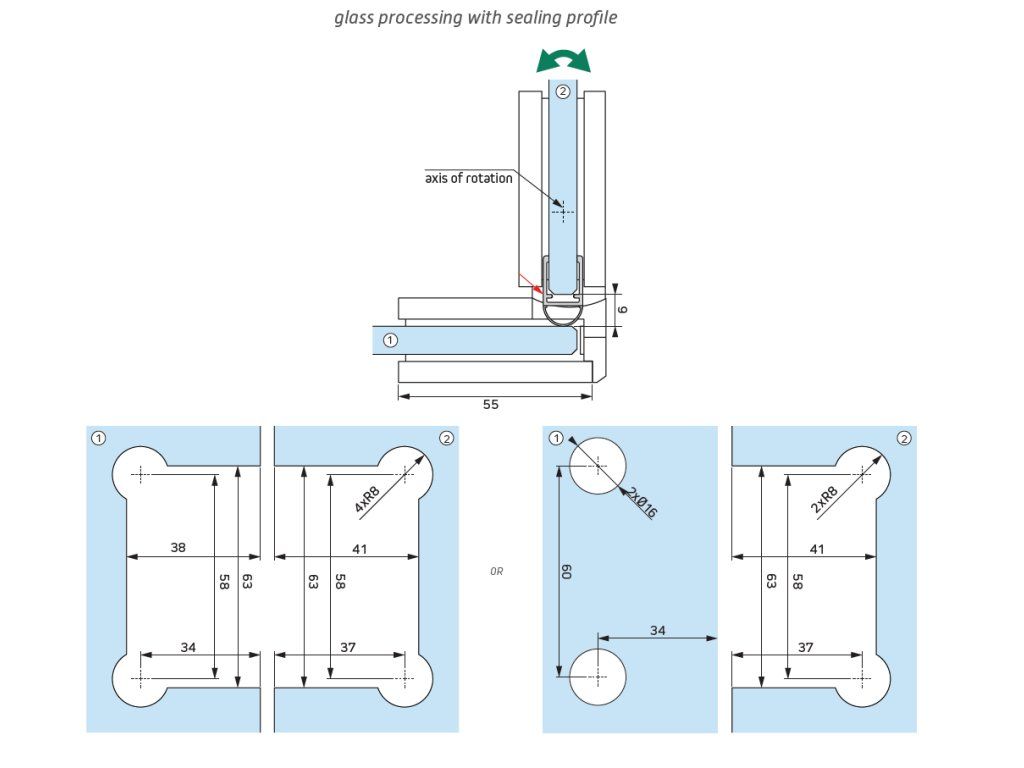 Oboustranný závěs s nastavitelným úhlem zavírání ± 10° a ukrytými šrouby